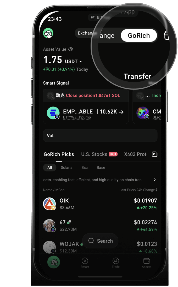GoRich Smart Money Signals provides the most comprehensive list of KOLs (Key Opinion Leaders) across the crypto space. It monitors their buy and sell activities in real-time, delivering precise trading signals to help you seize market opportunities. With one-click order placement, you can effortlessly follow KOLs’ investment moves and execute strategies quickly. Core Advantages:Comprehensive KOL List: Includes top global KOLs, such as NFT players and crypto investors, ensuring broad coverage.Real-Time Monitoring: Tracks KOL trading behavior 24/7 to capture every opportunity.Instant Signals: Delivers immediate buy/sell notifications for faster decision-making.One-Click Trading: Simplifies the process, allowing seamless execution of KOL-inspired trades to boost investment efficiency.