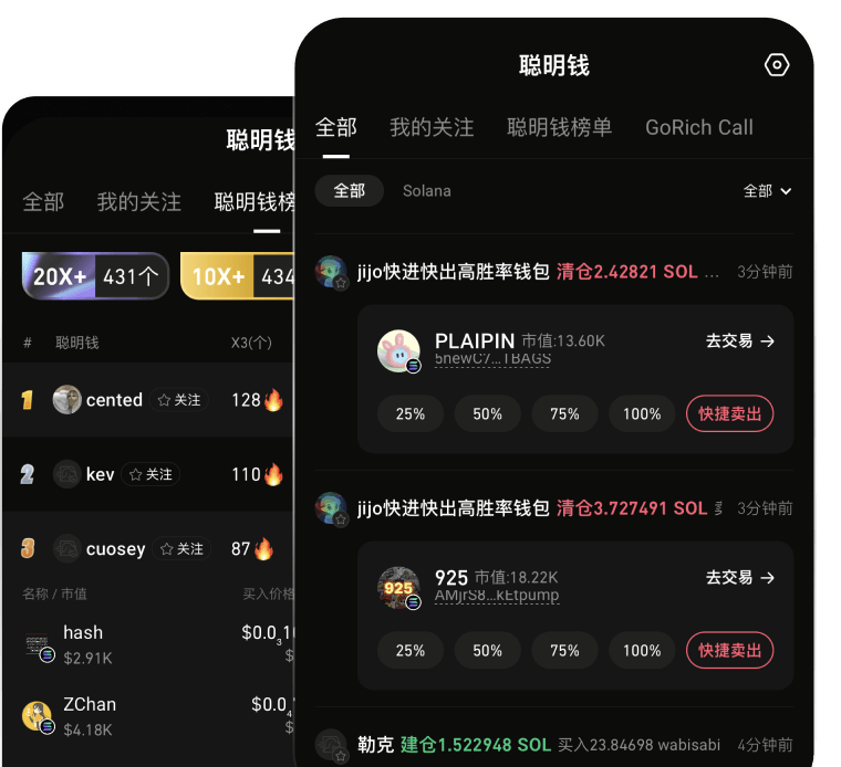 GoRich 聪明钱提供全网最全面的 KOL(关键意见领袖)名单,实时监控其买卖行为,提供精准交易信号,助您抢占市场先机。通过“一键下单”,可轻松跟随 KOL 动态执行交易策略。